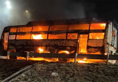 मथुरा हाईवे बाईपास पर अचानक आग का गोला बनी बस, बाल- बाल बचे 60 यात्री