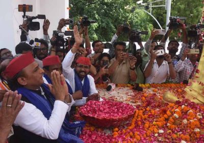 सपा प्रमुख अखिलेश यादव ने बाबा साहब की प्रतिमा पर किया माल्यार्पण