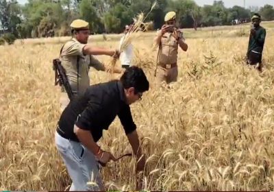 हमीरपुर डीएम ने थामा हंसिया, खेत में काटी गेहूं की फसल... वीडियो वायरल