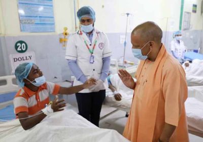 लखनऊ के लोकबंधु अस्पताल पहुंचे सीएम योगी, मानसिक मंदित बच्चों का जाना हाल
