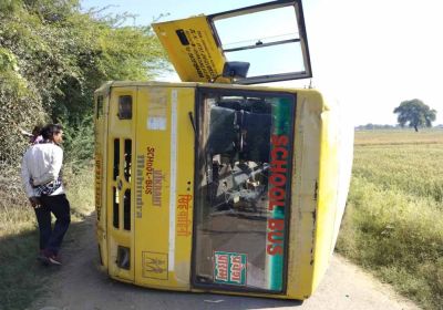 बेकाबू स्कूल बस पलटी, 15 छात्र-छात्राएं घायल