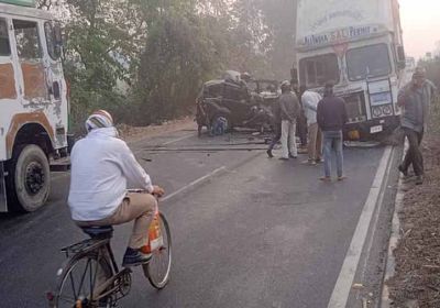 यूपी के बस्ती में भीषण सड़क हादसा : कंटेनर और कार की भीषण टक्कर, पांच की मौत