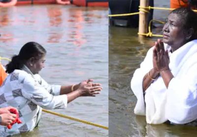 राष्ट्रपति द्रौपदी मुर्मू ने त्रिवेणी संगम में लगाई डुबकी