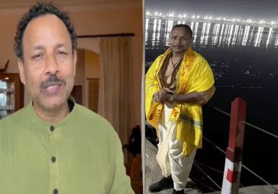 सपा प्रवक्ता अनुराग भदौरिया प्रयागराज महाकुंभ पहुंचे, संगम में डुबकी लगाई