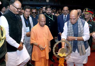 रक्षा मंत्री राजनाथ सिंह ने लखनऊ में सेना के युद्ध स्मारक पर लेज़र, लाइट और साउंड शो का किया उद्घाटन