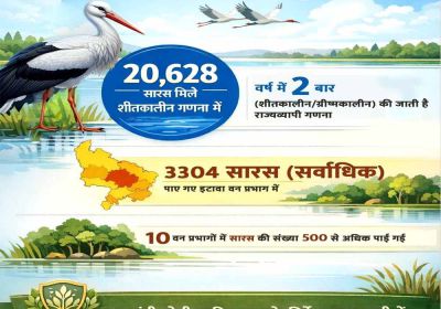 इटावा वन प्रभाग में पाए गए सर्वाधिक 3304 सारस, 10 वन प्रभागों में यह संख्या 500 से अधिक पाई गई