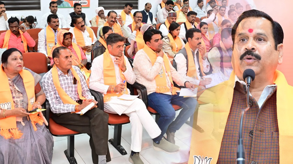 भारतीय जनता पार्टी के क्षेत्रीय संगठन महामंत्री श्री अजय जामवाल एवं प्रदेश प्रभारी डॉ. महेंद्र सिंह ने सोमवार को  भाजपा प्रदेश कार्यालय में भोपाल संभाग के नगरीय एवं ग्रामीण निकायों के जनप्रतिनिधियों की बैठक को संबोधित करते हुए कहा कि प्रधानमंत्री श्री नरेंद्र मोदी जी ने 2047 तक भारत को विकसित देशों की पंक्ति में लाने का संकल्प लिया है। इस दिशा में प्रधानमंत्री श्री मोदी जी ने जब से देश की कमान संभाली है तभी से तेजी से विकास कार्य हो रहे है। हमें भी तन-मन और धन से अपने-अपने क्षेत्र का विकास करना होगा। देश की जनता का भरोसा हमारी पार्टी पर लगातार प्रधानमंत्री श्री मोदी जी के नेतृत्व में बढ़ता जा रहा है। हमें लगातार जनता का समर्थन इसलिए मिल रहा है क्योंकि प्रधानमंत्री श्री नरेन्द्र मोदी जी के नेतृत्व में हर वर्ग के लिए विकास योजनाएं शुरू की गई हैं। प्रदेश प्रभारी डॉ. महेंद्र सिंह ने कहा कि प्रदेश में ट्रिपल इंजन की सरकार होने के नाते पिछले कुछ सालों में प्रदेश का विकास तेज रफ्तार से हुआ है। इसे हम सबको मिलकर आगे बढाना है। श्रद्वेय अटल बिहारी वाजपेयी जी के सपनों को साकार करने के लिए उनके बताए मार्ग पर चलकर विकास करना होगा। इस अवसर पर प्रदेश महामंत्री व विधायक श्री भगवानदास सबनानी, प्रदेश उपाध्यक्ष श्री पकंज जोशी एवं जिलाध्यक्ष श्री रविंद्र यति मंचासीन रहे।