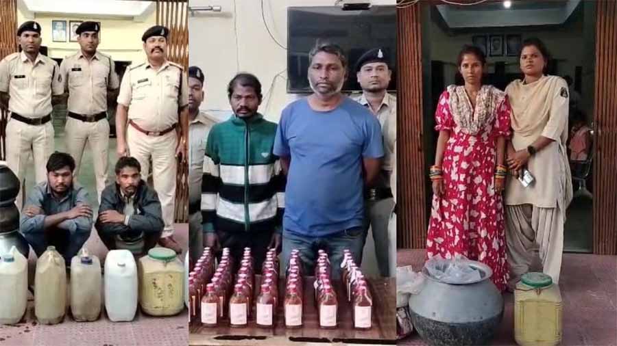 113 लीटर महुआ और 100 पाव अंग्रेजी शराब सहित 6 आरोपी गिरफ्तार