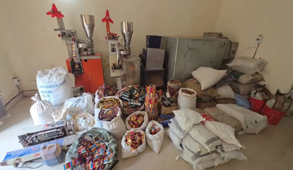 इंदौर में नकली पान मसाला बनाने वाले कारखाने का भंडाफोड़, तीन गिरफ्तार, मशीन और सामान जब्त