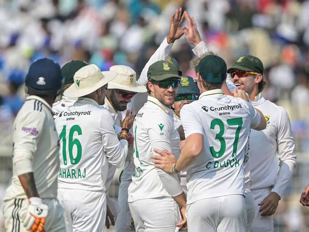 टेंबा बवुमा की अगुवाई वाली साउथ अफ्रीका की टीम ने कोलकाता टेस्ट में बड़ा उलटफेर करते हुए टीम इंडिया को 30 रनों से धूल चटाई। साउथ अफ्रीका ने भारत के सामने जीत के लिए 124 रनों का टारगेट रखा था, मगर इस स्कोर के सामने पूरी भारतीय टीम 93 रनों पर ही ढेर हो गई। कप्तान शुभमन गिल चोटिल होने की वजह से दूसरी पारी में भी बैटिंग करने नहीं आए।