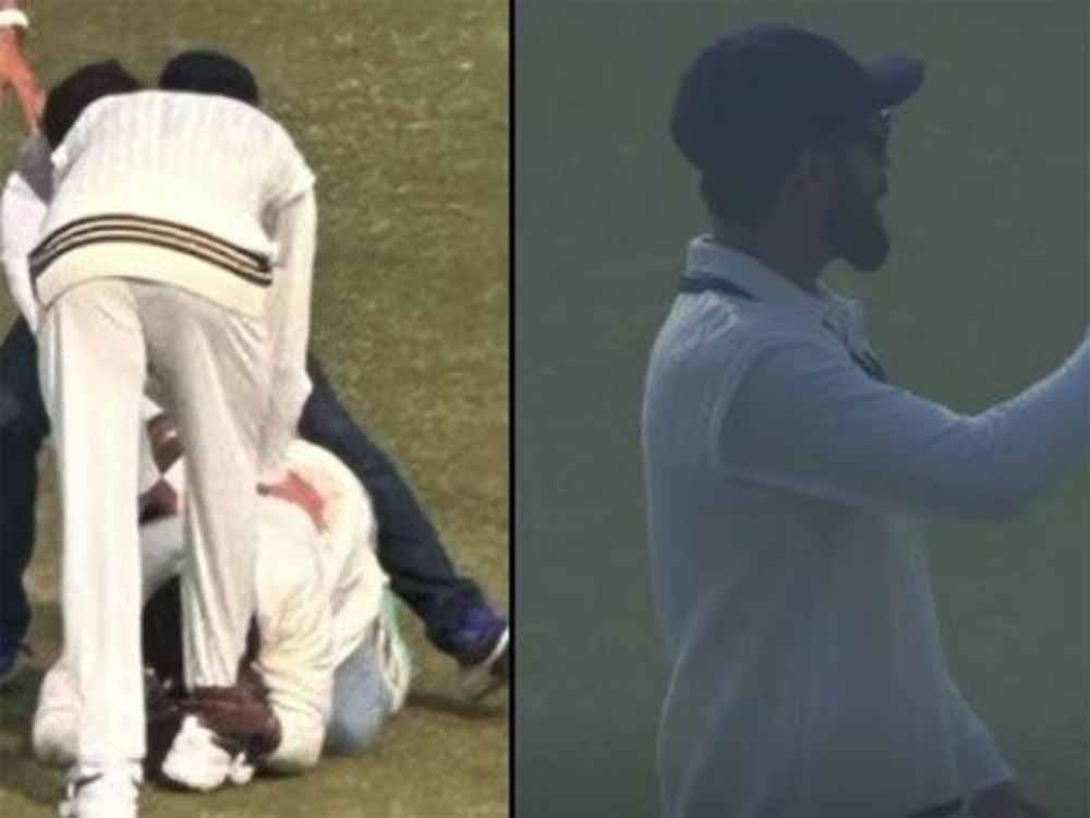 12 साल के लंबे अंतराल के बाद घरेलू मुकाबला खेलने उतरे विराट कोहली को देखने के लिए दिल्ली के अरुण जेटली स्टेडियम में जनसैलाब आया। दिल्ली एवं जिला क्रिकेट संघ ने इसके लिए खास इंतजाम किए थे, कोहली के इस मैच को यादगार बनाने के लिए उन्होंने फ्री एंट्री भी रखी थी। हालांकि एक फैन ने मैदान में घुसकर सारी सुरक्षा को सेंध लगा दी। इस जबरा फैन के आगे सुरक्षाकर्मियों की एक ना चली और वह सीधा विराट कोहली के नजदीक पहुंच गया। कोहली के पास पहुंचकर फैन ने उनके पैर छुए। हालांकि कुछ ही सेकंड के अंदर सुरक्षाकर्मी वहां पहुंच गए और फैन को कोहली से दूर किया। इस दौरान सुरक्षाकर्मी उसे मार भी रहे थे, मगर कोहली ने उन्हें ऐसा करने से मना कर दिया। इस घटना का वीडियो सोशल मीडिया पर तेजी से वायरल हो रहा है।
