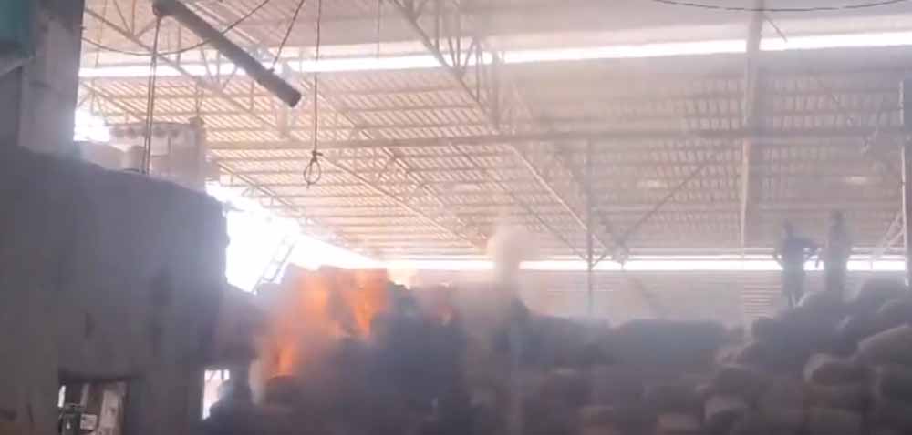 अनाज रखने के एक निजी गोदाम में लगी भीषण आग