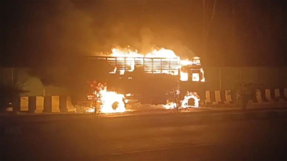राष्ट्रीय राजमार्ग 44 पर कुरई घाटी के पास चलते ट्रक में अचानक लगी आग, ड्राइवर और हेल्पर ने कूदकर बचाई जान