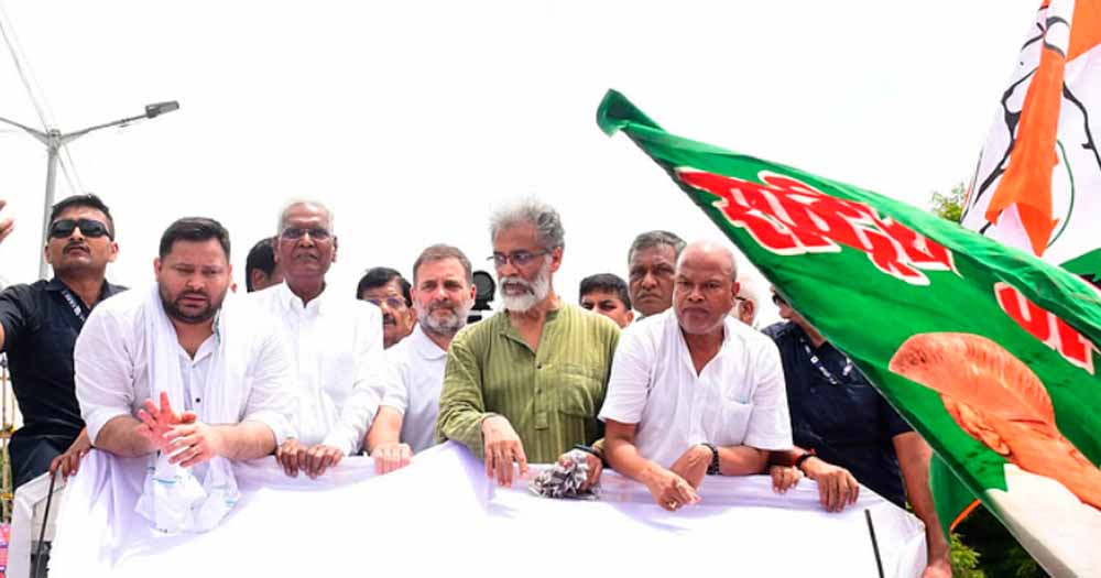 राहुल गांधी ने आरोप लगाया कि चुनाव आयोग के अधिकारी भाजपा और आरएसएस के एजेंट की तरह बात कर रहे हैं। वे अपनी जिम्मेदारी भूल गए हैं। उनका काम संविधान की रक्षा करना है। आप यह मत भूलिए कि कानून आपके ऊपर लागू होगा। कानून आपको नहीं छोड़ने वाला है। आपका काम भारत के संविधान की रक्षा करना है। आपका काम बिहार की जनता के वोट की रक्षा करना है। पहले चुनाव आयुक्त को सभी पार्टियां और चीफ जस्टिस मिलकर चुनते थे, लेकिन अब केवल भाजपा ही चुनाव आयुक्त को चुनती है। यही सच्चाई है। बिहार की जनता से मैं कहना चाहता हूं कि आपका वोट ही नहीं, भविष्य भी चोरी किया जा रहा है। लेकिन, इंडिया गठबंधन आप सबके साथ खड़ा है। हम लोग वोट की चोरी नहीं होने देंगे।