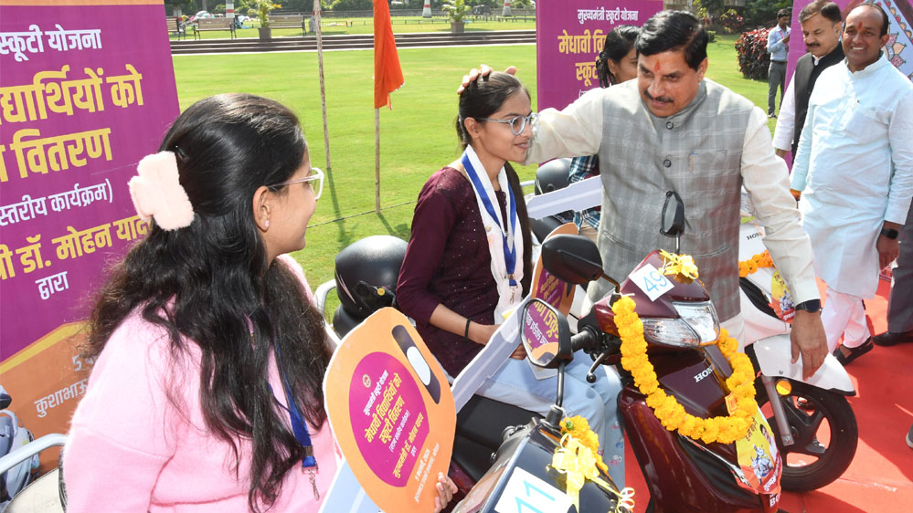 मुख्यमंत्री डॉ. यादव ने प्रतीक स्वरूप सर्वआदित्य राठौर, प्रशांत राजपूत, सिद्धार्थ साहू, रफत खान, आर्यन राजपूत, आकाश कुशवाह, सुबबली मीणा, पलक सिंह, ऊषा मीणा और सलोनी दांगी को ई-स्कूटी की चाबी भेंट की तथा उनके उज्ज्वल भविष्य के लिए शुभकामनाएं दीं।
