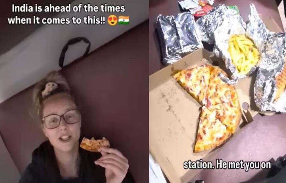 भारत की ट्रेन में पिज्जा-फ्रेंच फ्राइज डिलीवरी देख ऑस्ट्रेलियाई महिला हैरान, वीडियो हुआ वायरल
