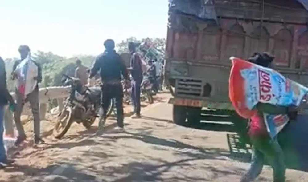 पन्ना में वाशिंग पाउडर से भरा ट्रक पलटते ही मची लूट, मदद के लिए चिल्लाता रहा ड्राइवर