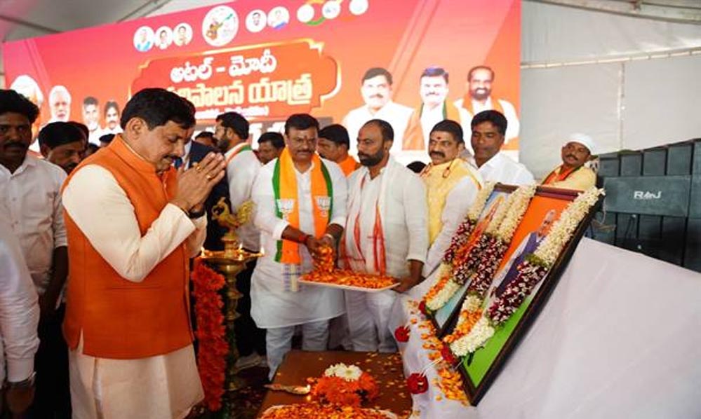 मुख्यमंत्री डॉ. यादव ने आंध्रप्रदेश के धर्मावरम में पूर्व प्रधानमंत्री स्व. वाजपेयी की प्रतिमा पर किया माल्यार्पण