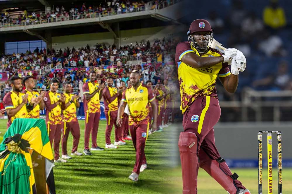 अपना आखिरी अंतरराष्ट्रीय मैच खेल रहे आंद्रे रसेल ने 15 गेंद में दो चौके और चार छक्कों की मदद से 36 रन की पारी खेली। होल्डर एक रन बनाकर आउट हुए। आखिर में गुडाकेश मोती ने नौ गेंद में एक चौका और दो छक्कों की मदद से नाबाद 18 रन बनाए। ऑस्ट्रेलिया की ओर से एडम जैम्पा ने तीन विकेट लिए। नाथन एलिस और मैक्सवेल को दो-दो विकेट मिले। वहीं, बेन ड्वारशुइस को एक बल्लेबाज को आउट किया।