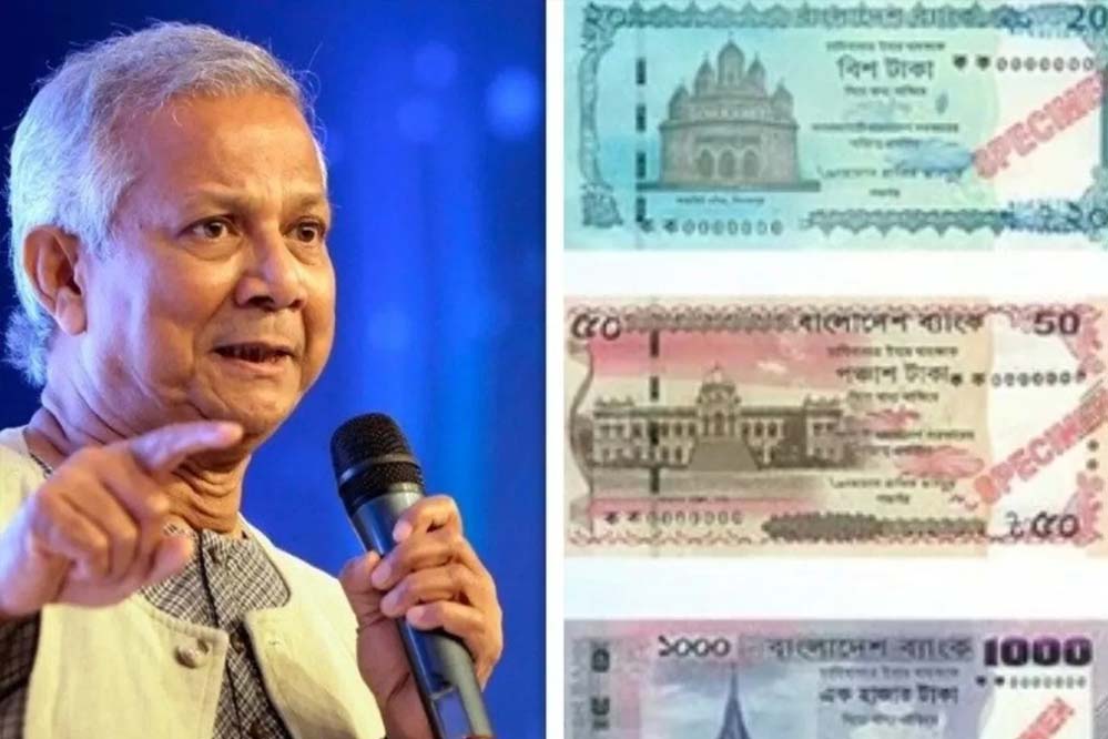 अब तक बांग्लादेश की करेंसी में शेख मुजीबुर रहमान दिखते थे। उन्होंने 1971 के बांग्लादेश स्वतंत्रता संग्राम का नेतृत्व किया था और 1975 में तख्तापलट के दौरान उनका कत्ल कर दिया गया था। बांग्लादेश के नए नोटों की डिजाइन को पेंटर जैनुल आबेदीन ने तैयार किया है। इसमें बंगाल के अकाल को भी दर्शाया गया है।