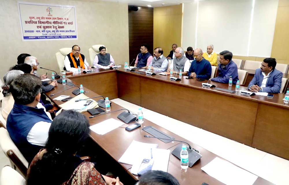 सूक्ष्म लघु एवं मध्यम उद्यम मंत्री श्री चैतन्य कुमार काश्यप ने उद्योग संघों के प्रतिनिनिधों से कहा है कि प्रदेश सरकार ग्लोबल इन्वेस्टर समिट से पहले मुख्यमंत्री डॉ. मोहन यादव के नेतृत्व में नई एमएसएमई (MSME) पॉलिसी के साथ ही भूमि आवंटन नियम और प्रोत्साहन की ऐसी पॉलिसी लाएगी जिससे मध्यप्रदेश में स्थानीय उद्यमिता का विकास विदेशी निवेशकों को प्रदेश में उद्योग लगाने के लिये आकर्षित करने के साथ सर्वाधिक रोजगार सृजन वाले प्रदेश के रूप में उभरे।