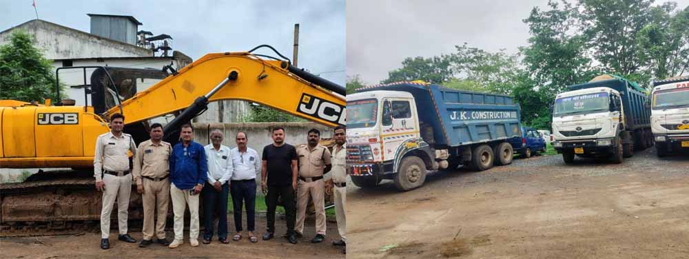 अभनपुर में खनिज विभाग की बड़ी कार्रवाई, अवैध रेत खनन में लगी मशीन और 7 हाईवा जब्त