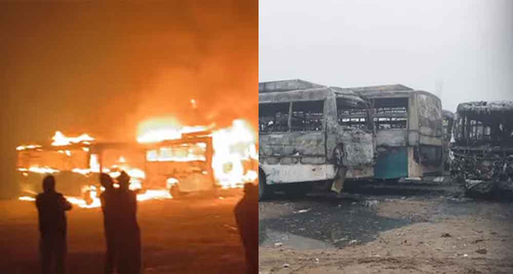 बिहार-दरभंगा में दिल्ली मोड़ बस स्टैंड में देर रात लगी भीषण आग, धू-धू कर जल गईं पांच बसें