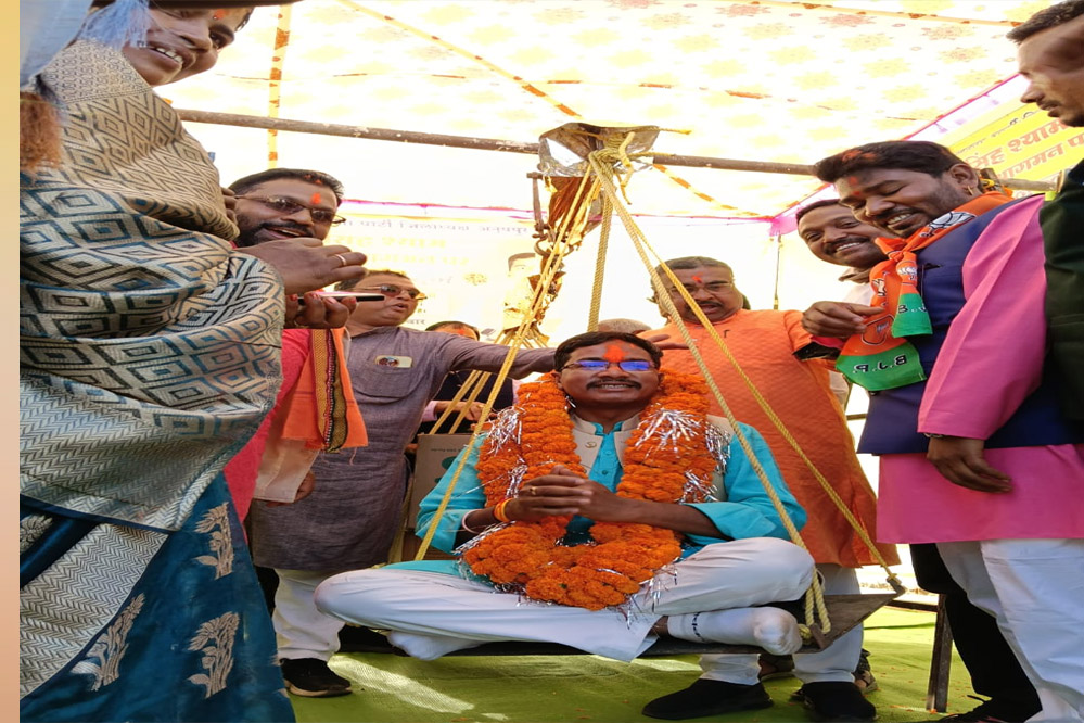 भाजपा जिला अध्यक्ष हीरा सिंह श्याम का कार्यकर्ताओं ने लड्डुओं से तौलकर किया सम्मान