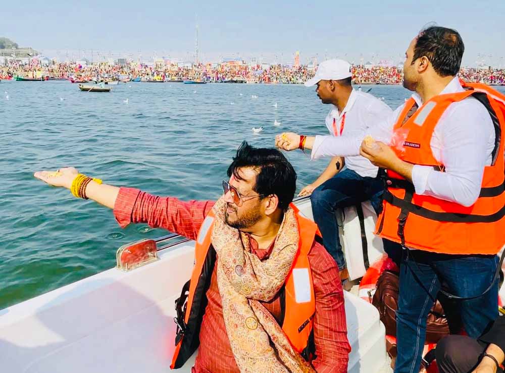 भाजपा सांसद व अभिनेता रवि किशन ने गंगा में डुबकी लगाई, इस दौरान अखिलेश यादव पर साधा निशाना
