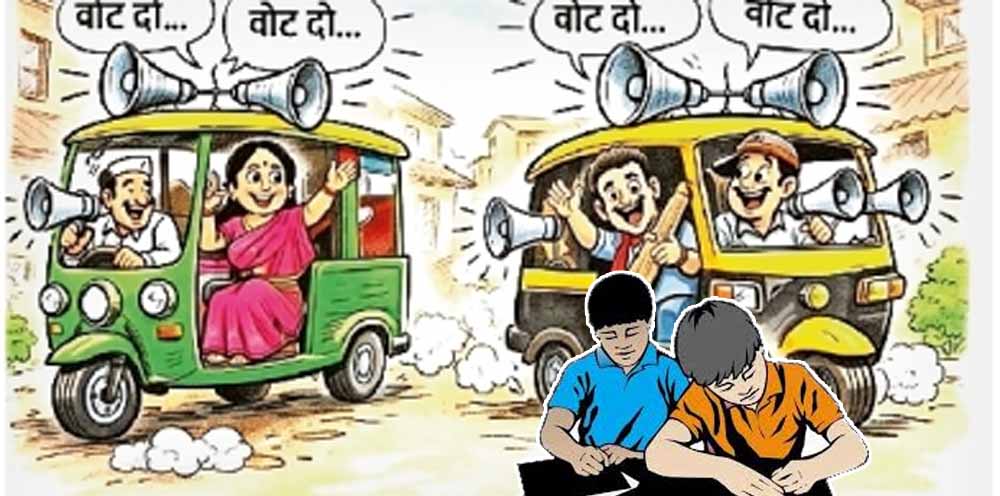 नगर निगम चुनाव के दौरान बज रहे लाउडस्पीकरों का तेज शोर इन दिनों बोर्ड परीक्षा की तैयारी कर रहे विद्यार्थियों के लिए बड़ी समस्या बन गया है। कई इलाकों से शिकायत मिल रही है कि तय समय के बाद भी प्रचार में तेज आवाज में लाउडस्पीकर बजाए जा रहे हैं, जिससे छात्रों की पढ़ाई प्रभावित हो रही है।