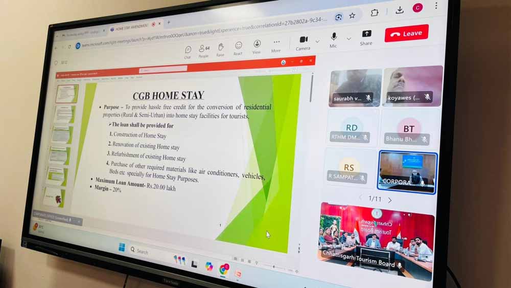 होमस्टे पॉलिसी के प्रभावी क्रियान्वयन, सब्सिडी प्रक्रिया और अतिरिक्त सुविधाओं पर केंद्रित महत्वपूर्ण ऑनलाइन बैठक छत्तीसगढ़ टूरिज्म बोर्ड के प्रबंध संचालक विवेक आचार्य की अध्यक्षता में संपन्न हुई। सरगुजा और बस्तर संभाग के होमस्टे ओनर्स व टूरिज्म स्टेकहोल्डर्स ने ऑनलाइन भाग लिया, जबकि छत्तीसगढ़ ग्रामीण बैंक के अध्यक्ष विनोद अरोड़ा विशेष अतिथि के रूप में उपस्थित रहे।