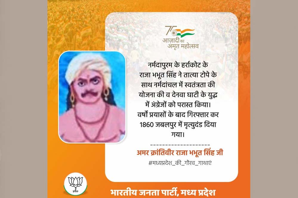 राजा भभूतसिंह की वीरगाथा, अंग्रेज अधिकारी एलियट की 1865 की सेटलमेंट रिपोर्ट में भी दर्ज है। वे सतपुड़ा क्षेत्र के “शिवाजी ” कहे जाते हैं। अफसोस है कि जिस योद्धा ने अंग्रेजों से दो वर्षों तक सतत संघर्ष किया, वह इतिहास की पुस्तकों में उचित स्थान नहीं पा सका।