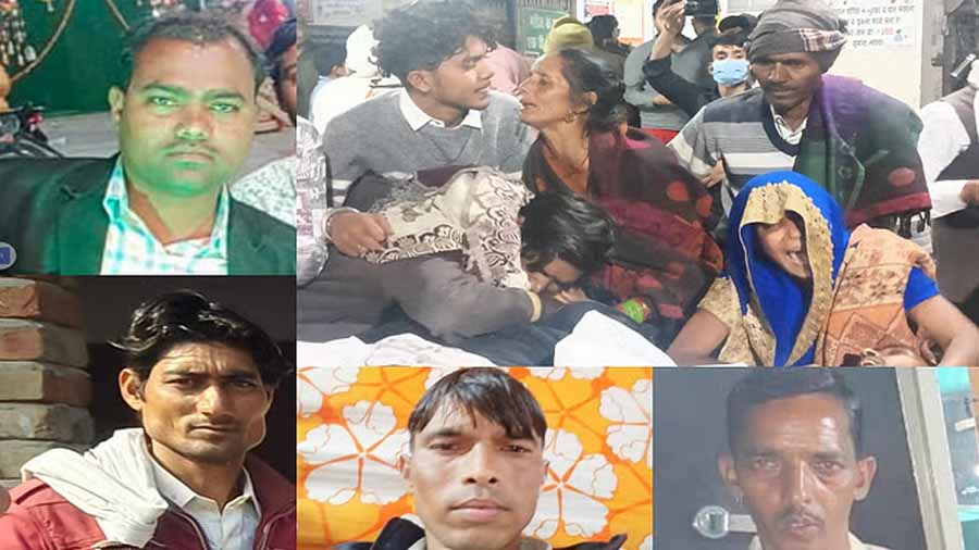 बाइक सवार मृतकों में भगवान दास की पत्नी ललिता और दो बच्चे हैं। रामस्वरूप की पत्नी स्वाती हैं। उनके तीन बच्चे हैं। सोनू की मां और वकील की पत्नी कुसुमा भी एसएन इमरजेंसी पहुंच गईं। परिजन ने बताया कि चारों फेरी लगाकर गुजारा करते थे। शव देखकर पत्नियां होश खो बैठीं। उनके साथ आए ग्रामीणों ने हादसा करने वाले बुलेट को सामने लाया जाए। ग्रामीणों ने बताया कि चारों मृतकों के छोटे बच्चे हैं। किराये के मकानों में रहते हैं। उन्होंने परिवार को 10-10 लाख रुपये का मुआवजे की मांग की। देर रात तक एसएन इमरजेंसी पर हंगामा होता रहा। चीख पुकार मची हुई थी।