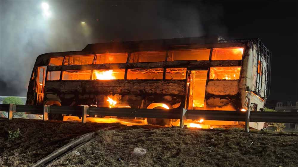 जानकारी के अनुसार, बस चालक ने इंजन में खराबी आने के बावजूद बस को चलाना जारी रखा, जिससे बस में भीषण आग लग गई. आग लगते ही चालक और परिचालक मौके से फरार हो गए.