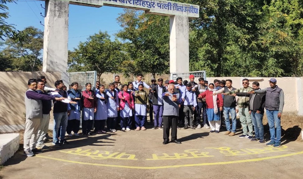 येलो लाइन बनाकर शासकीय महाविद्यालय बिरसिंहपुर पाली को तम्बाकू मुक्त परिसर किया गया घोषित