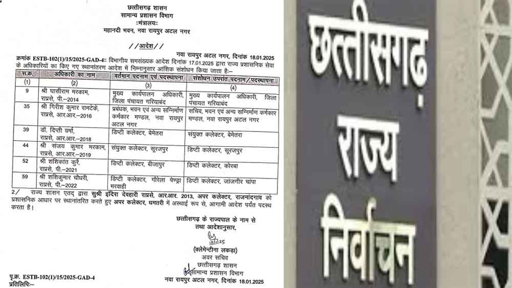 छत्तीसगढ़-गरियाबंद कलेक्टर ने ऋषा ठाकुर को बनाया रिटर्निंग ऑफिसर, जिला पंचायत CEO मरकाम को हटाया