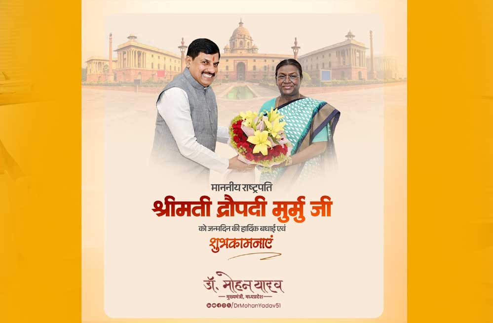राष्ट्रपति श्रीमती मुर्मु को मुख्यमंत्री डॉ. यादव ने जन्मदिन की शुभकामनाएं दीं