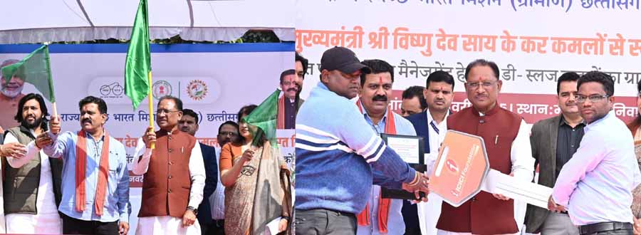 मुख्यमंत्री साय ने 10 डी-स्लज वाहनों को दिखाई हरी झंडी: सरपंच और सचिवों को डी-स्लज वाहनों की सौंपी चाबी