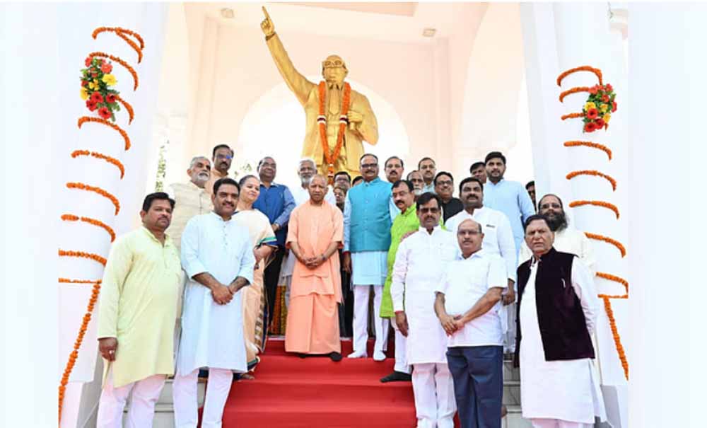सीएम योगी ने अपनी कैबिनेट के साथ डॉ. आंबेडकर को दी श्रद्धांजलि