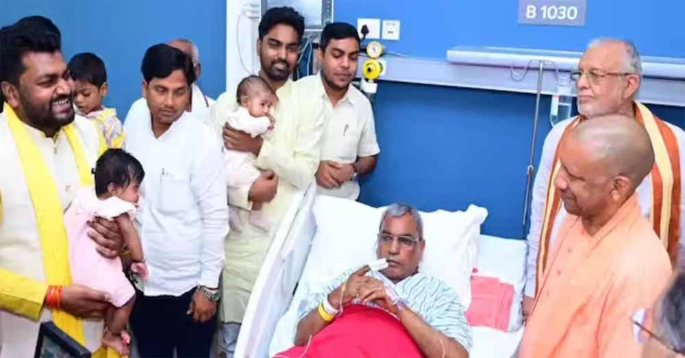 सीएम योगी ने अस्पताल में ब्रेन स्ट्रोक से पीड़ित राजभर से की मुलाकात