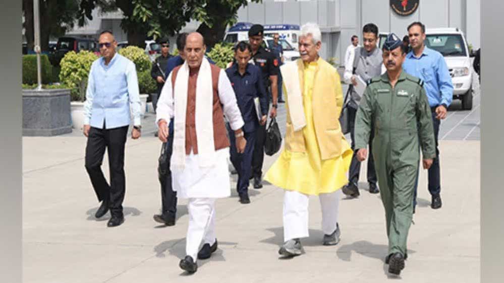 रक्षा मंत्री राजनाथ सिंह श्रीनगर पहुंचे, बादामी बाग छावनी का किया दौरा, LG मनोज सिन्हा भी मौजूद