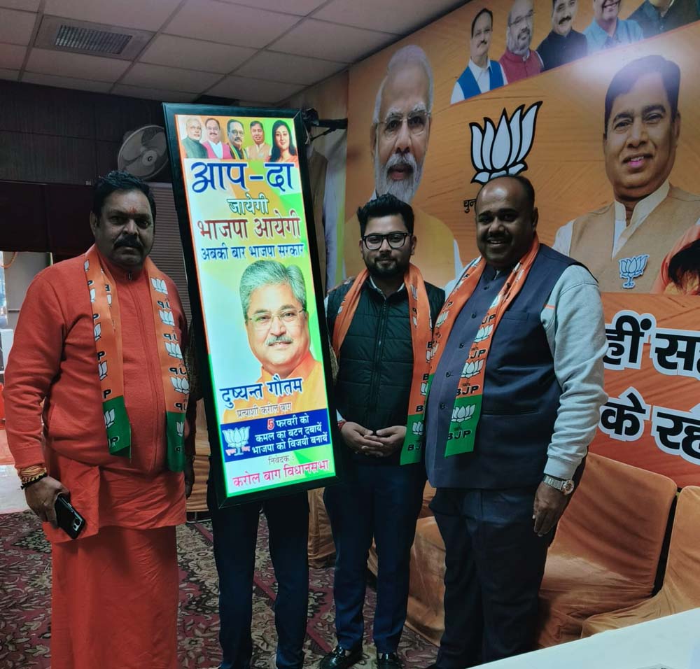दिल्ली विधानसभा चुनाव में प्रचार चरम पर चल रहा है। आज उत्तराखंड के पूर्व विधायक एवं रविदास आचार्य सुरेश राठौर तथा भारतीय जनता पार्टी के पूर्व राष्ट्रीय उपाध्यक्ष सूरजभान कटारिया ने भी भाजपा प्रत्याशी दुष्यंत कुमार गौतम के लिए करोल बाग क्षेत्र में वोटो का चुनाव प्रचार किया और वोट मांगे।