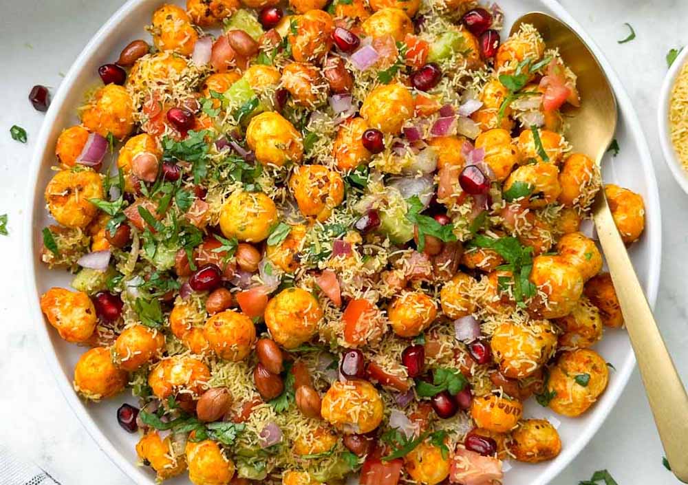 ऊपर से हरी चटनी, मीठी चटनी, नींबू का रस और चाट मसाला डालकर अच्छी तरह मिलाएं।