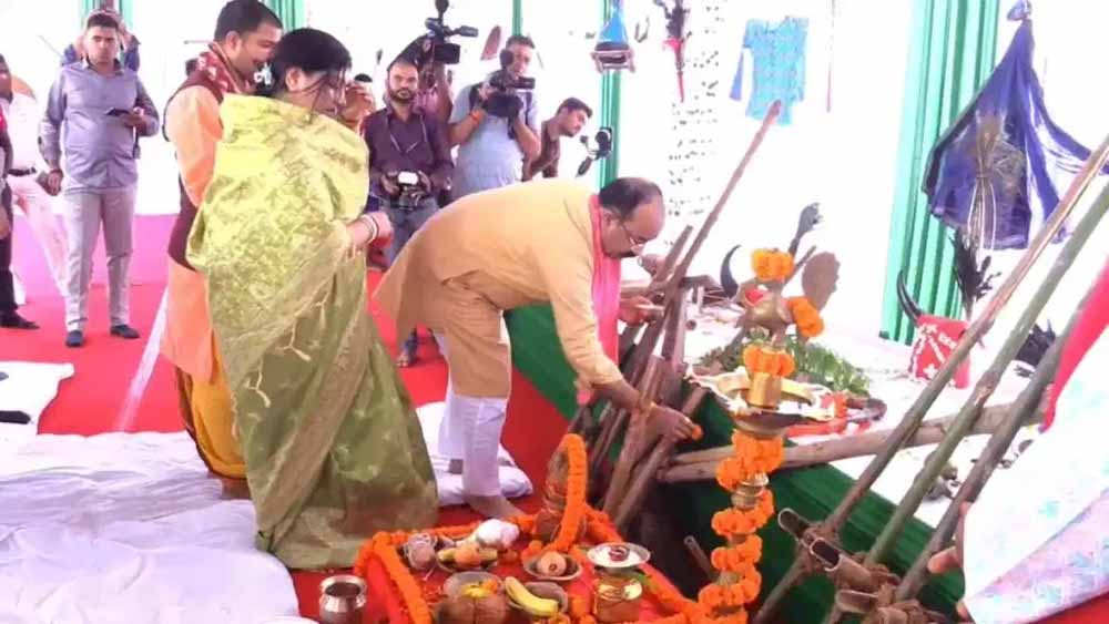 हरेली परंपरा में डूबे डिप्टी सीएम साव: पत्नी संग की खेती उपकरणों की पूजा