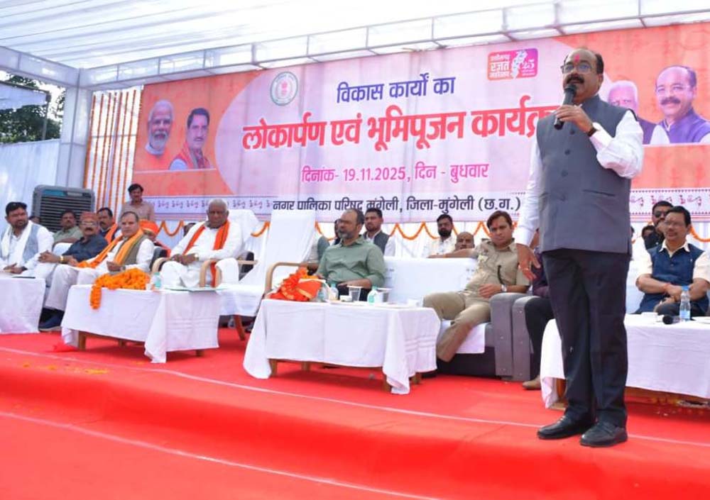 डिप्टी सीएम अरुण साव ने सार्वजनिक मंच से कहा कि मुंगेली नगर पालिका के लिए धन की कोई कमी नहीं है, केवल कार्ययोजना बनाने में देरी है। उन्होंने स्पष्ट किया कि पहले से स्वीकृत कार्यों को शीघ्र पूरा कराना अत्यंत आवश्यक है। चाहे वह नगरीय प्रशासन विभाग हो, खेल विभाग, पीडब्ल्यूडी या पीएचई—मुंगेली क्षेत्र के विकास में किसी भी प्रकार की कमी नहीं रहने दी जाएगी।