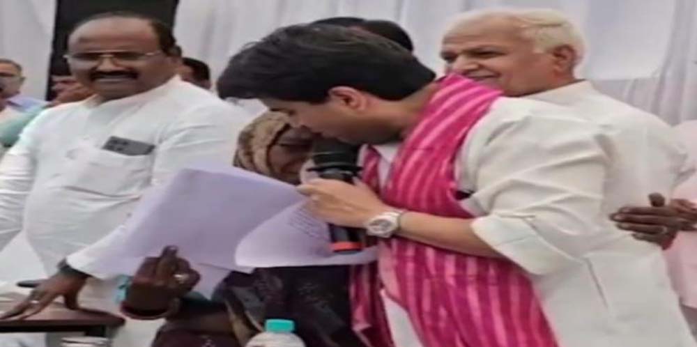 केंद्रीय मंत्री सिंधिया की जनसुनवाई के दौरान एक महिला अपने खुशी के आंसू नहीं रोक पाईं, महिला को गले लगाकर संभाला