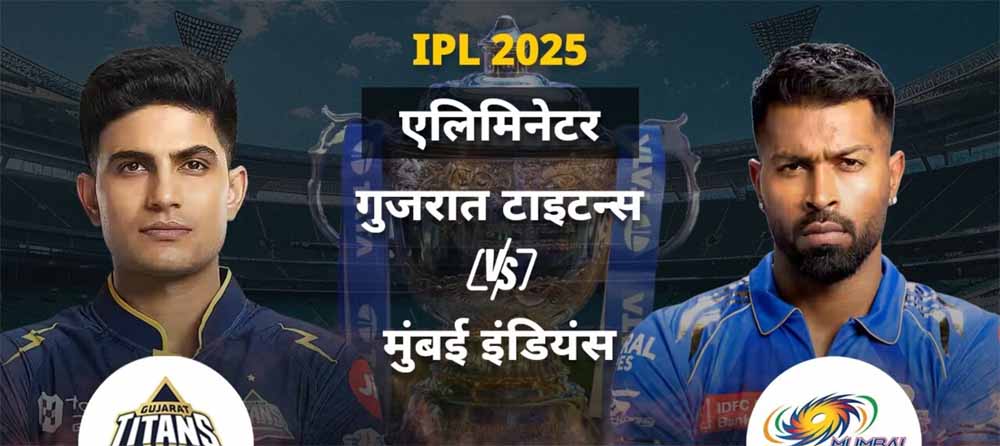 इंडियन प्रीमियर लीग के 18वें सीजन में शुक्रवार को गुजरात टाइटंस और मुंबई इंडियंस के बीच एलिमिनेटर खेला जाएगा। पहले क्वालीफायर में बेंगलुरु ने पंजाब को मात दी। गुजरात टाइटंस और मुंबई इंडियंस के बीच इंडियन प्रीमियर लीग के 18वें सीजन का एलिमिनेटर आज खेला जाएगा। शुभमन गिल के नेतृत्व में गुजरात टाइटंस ने खिताब के दावेदार के रूप में शुरुआत की थी, लेकिन प्लेऑफ्स से ठीक पहले टीम ने फॉर्म गंवा दिया और लगातार दो मैच गंवाए हैं। हालांकि मुंबई की टीम गुजरात को हल्के में लेने की भूल नहीं करेगी। क्योंकि गुजरात ने मुंबई को लीग स्टेज में दो बार शिकस्त दी है। वहीं दूसरी तरफ सीजन की बेहद खराब शुरुआत करने वाली पांच बार की चैंपियन मुंबई इंडियंस की टीम ने लगातार 6 मैच जीतकर दमदार वापसी की थी और एलिमिनेटर में भी टीम गुजरात पर भारी पड़ सकती है। एलिमिनेटर में हारने वाली टीम प्रतियोगिता से बाहर हो जाएगी, जबकि विजेता टीम को दूसरे क्वालीफायर में खेलने का मौका मिलेगा।