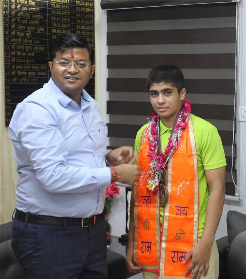 श्योपुर की बेटी सुखमन कौर ने अंतर्राष्ट्रीय मंच पर भारत का परचम लहराया। किर्गिस्तान में आयोजित एशियन अंडर-15 कुश्ती चैम्पियनशिप में उन्होंने मंगोलिया और कजाकिस्तान की खिलाड़ियों को 10-0 के अंतर से हराकर काँस्य पदक हासिल किया। सुखमन की इस जीत पर श्योपुर कलेक्टर श्री अर्पित वर्मा ने कलेक्ट्रेट कार्यालय में उनका स्वागत और सम्मान किया। साथ ही उनके उज्जवल भविष्य की कामना की। कलेक्टर ने एकलव्य अवॉर्ड के लिए सुखमन कौर का नाम अनुशंसा करने के लिए खेल अधिकारी को निर्देशित किया। इसके अंतर्गत दो लाख रुपये की पुरस्कार राशि दी जाती है।
