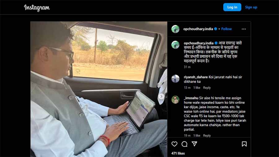 वित्त मंत्री ओपी चौधरी ने सोशल मीडिया प्लेटफार्म इंस्टाग्राम पर किए अपने पोस्ट में रायगढ़ जाते हुए ई-ऑफिस के जरिए फाइलों के निष्पादन की तस्वीर शेयर की है. इसे उन्होंने बताया कि तकनीक के जरिये सुगम और प्रभावी प्रशासन की दिशा में यह एक महत्वपूर्ण कदम बताया है.