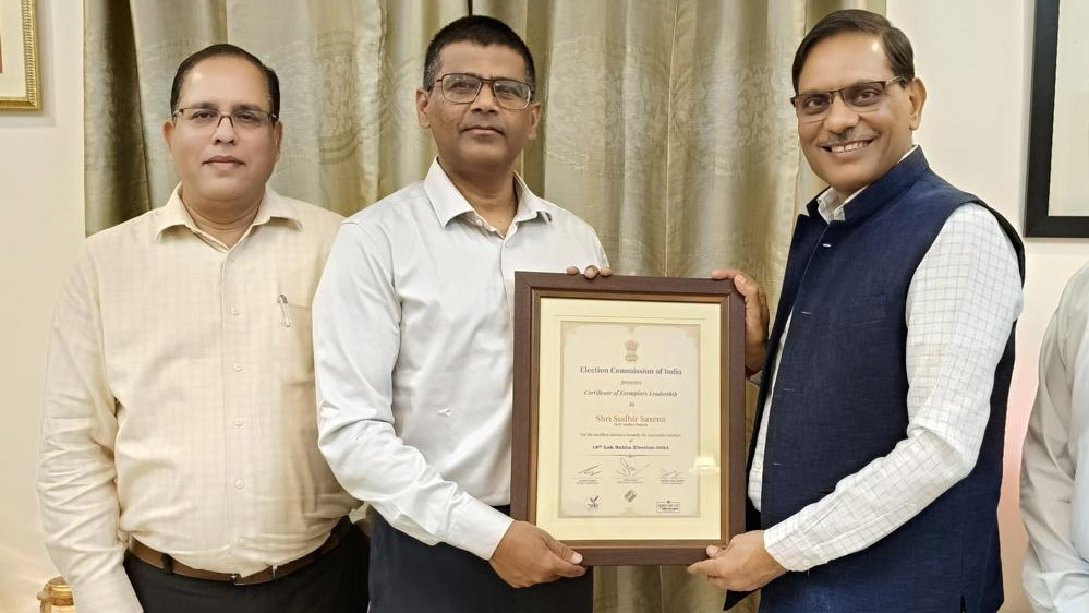लोकसभा निर्वाचन-2024 के दौरान मध्यप्रदेश में सुचारू और निष्पक्ष चुनाव प्रक्रिया संपन्न हुई। इसे संपन्न कराने में पूर्व पुलिस महानिदेशक सुधीर सक्सेना और आईजी, स्टेट पुलिस नोडल अधिकारी (कानून व्यवस्था एवं सुरक्षा) अंशुमान सिंह की महत्वपूर्ण भूमिका रही। महत्वपूर्ण भूमिका के निर्वहन के लिए पूर्व डीजीपी सक्सेना और आईजी सिंह को भारत निर्वाचन आयोग द्वारा प्रमाण पत्र भेंट कर सम्मानित किया गया। भारत निर्वाचन आयोग द्वारा जारी प्रशंसा-पत्र को मुख्य निर्वाचन पदाधिकारी सुखवीर सिंह द्वारा दोनों अधिकारियों को प्रदान किया गया।